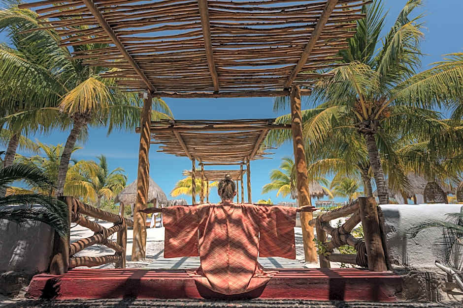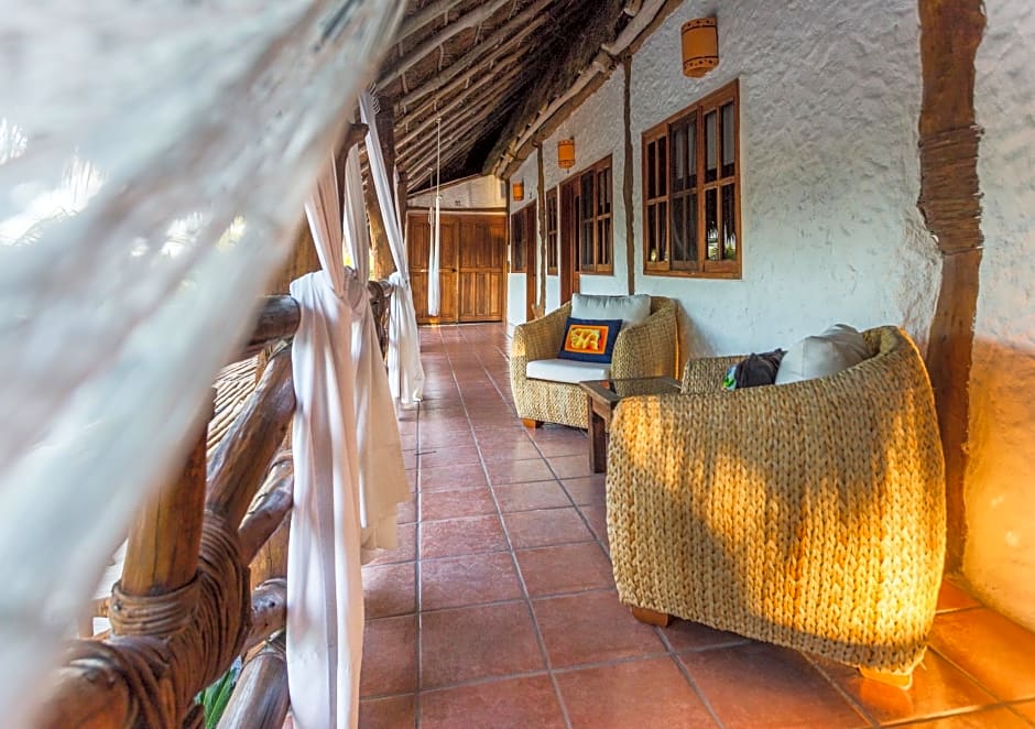 It is located on the top floor of the main building, overlooking the sea. It has a private balcony with a handmade hammock.